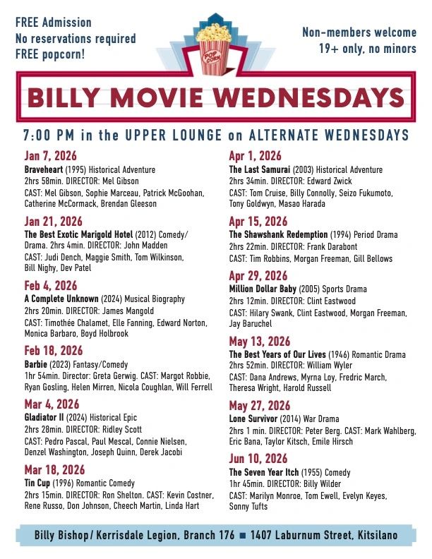 UPCOMING MOVIES AT THE BILLY! 7PM, UPPER LOUNGE EVERY 2ND WEDNESDAY. FREE EVENT. MUST BE 19+ TO ATTEND.